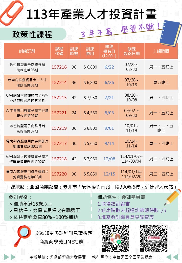 113政策性產業人才投資計畫課程
